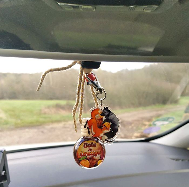 Car air refresher home-made "Cola&Orange" with a charms on it. Perfume Cola and orange.