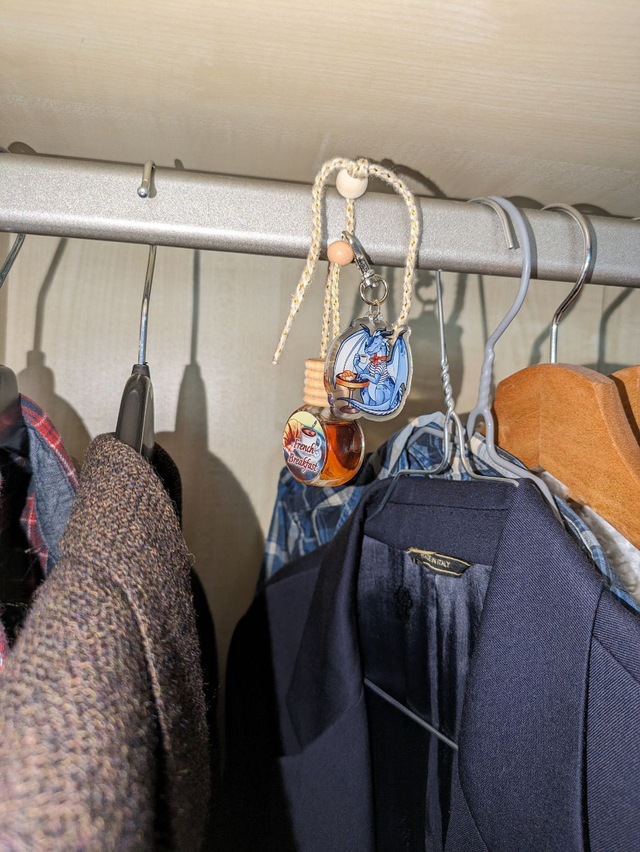 Car air refresher home-made "French Breakfast" with a charms on it. Perfume coffee and croissant.