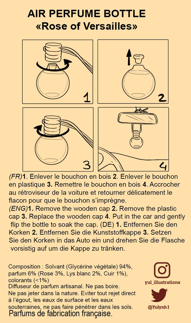 Diffuseur de parfum artisanal "Rose de Versailles" avec un charms intégré. Senteur rose, lys blanc et cuir.
