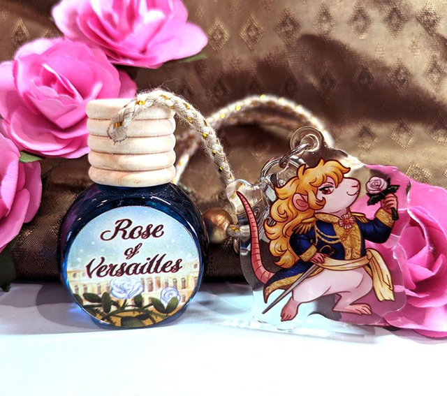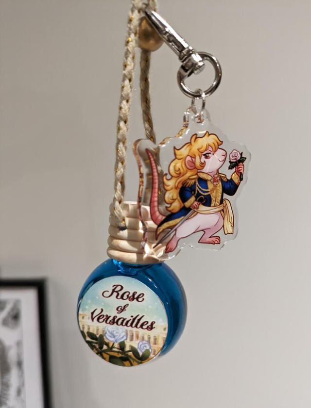 Car air refresher home-made "Rose of Versailles" with a charms on it. Perfume rose, white lys and leather.